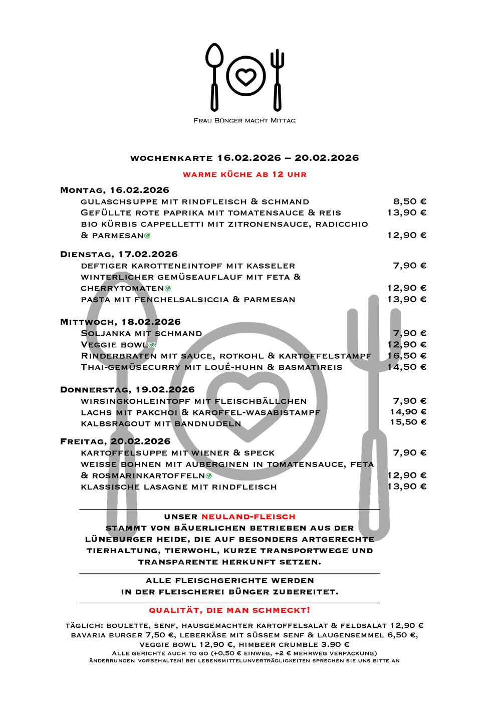 Täglich frisch mit Neuland-Fleisch zubereitet.
